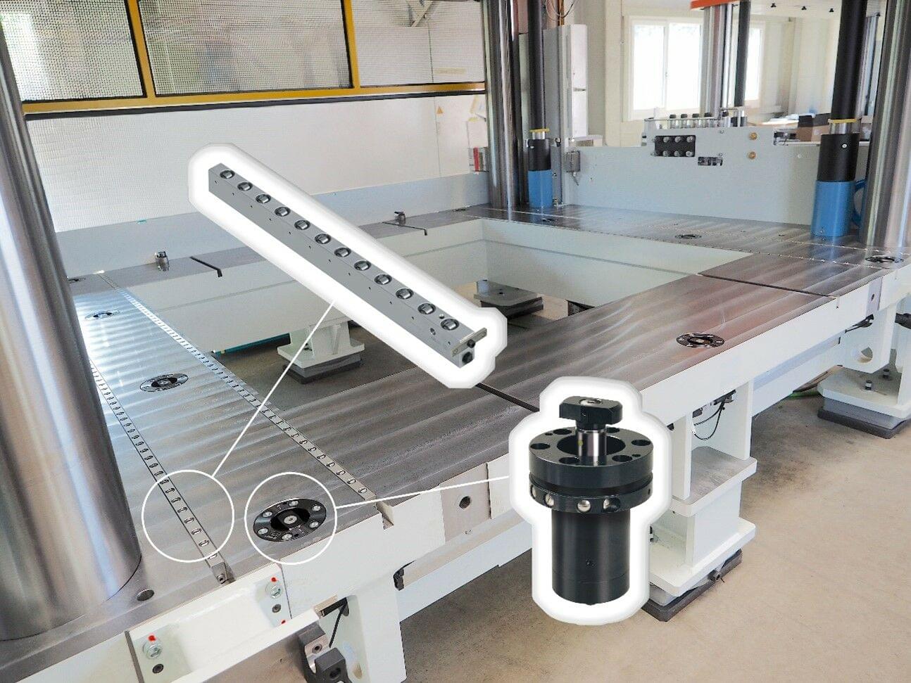 To facilitate the insertion and removal of heavy dies, ROEMHELD transport rails are also integrated into the table surface.