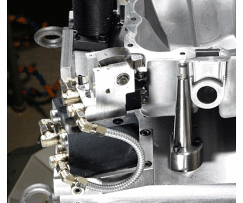 Each oil sump is additionally clamped and supported at a forth clamping point.