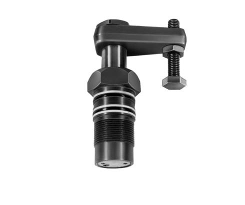 This design allows the use of swing clamps even in restricted places. The threaded-body swing clamp can be sunk directly into the fixture up to the hexagon.