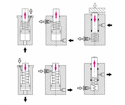Due to increased use of coolants and cutting fluids in metal cutting machining there is also an increased danger that some very aggressive fluids penetrate into the spring areas of single acting clamping elements and work supports, causing malfunctions.