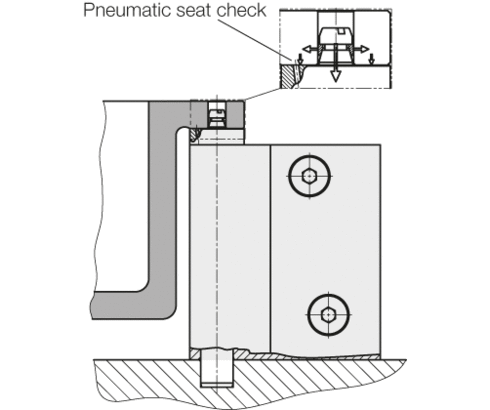 クランプネジはねじ山コーティングにより緩みを防止しています。液体や切粉の侵入は、正圧空気の接続により防止されています。
