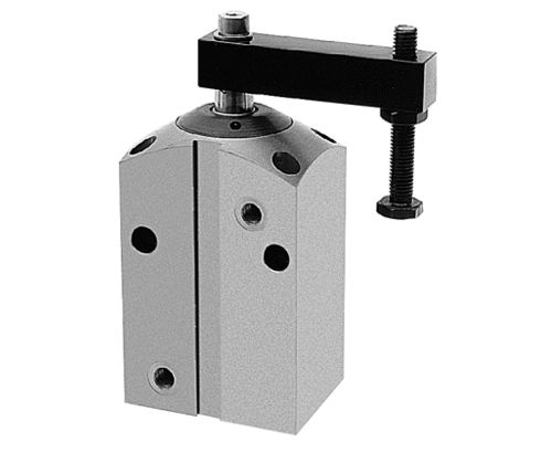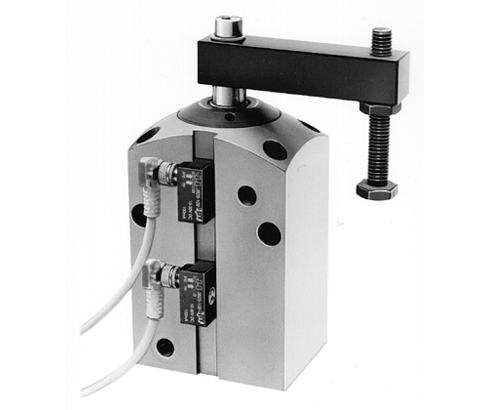 Pneumatic swing clamps are used for applications which require only low clamping forces. The installed magnetic piston allows monitoring of clamping and unclamping position.