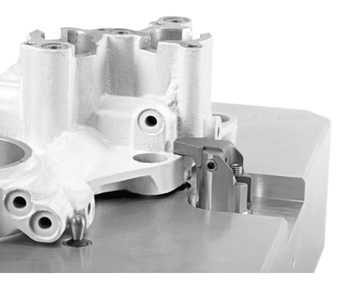 22mmの小さなハウジング径により、従来は油圧クランプの設置が困難だった狭いスペースにも取り付け可能です。複数クランプ治具の場合、シリンダー間の最小ピッチは28mmです。ワークにクランプレバーよりもやや広いクランプ凹部があれば十分です。