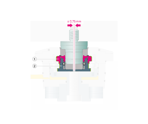 - The clamping mechanism can equalise for position deviations from the retractable nipple to the element with little force. For the equaliser element in one axis and for the element without centring in the X and Y axis (± 0.75 mm).