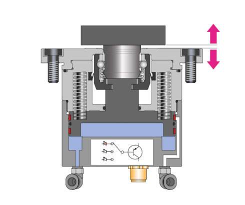 • The piston (2) is subjected to the release pressure (1) and moves upwards.