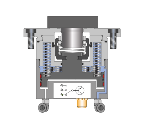 • The spring pre-tensioning force is initiated via the piston (2), which moves down.